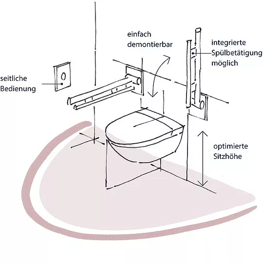Am persönlichsten Ort braucht es die besten Ideen: Ein Dusch-WC sorgt auf leichte Weise für Hygiene und ermöglicht angenehme Eigenständigkeit. Die richtige Montagehöhe erleichtert das Sitzen und wer doch ab und zu etwas mehr Hilfe braucht, klappt sich mit einem Handgriff ein oder zwei praktische Helferlein runter.