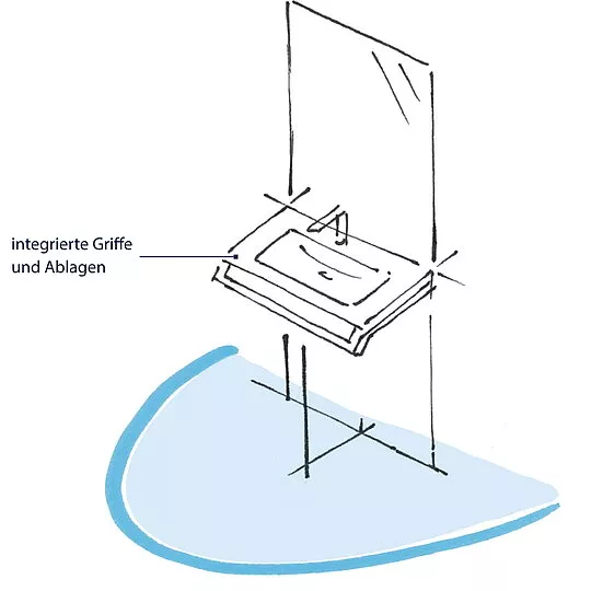 Ein Pflegebad-Waschbecken kann so viel mehr als ein herkömmliches: Es integriert Griffe und Handtuchhalter in sich – das schafft Platz und gibt Halt.